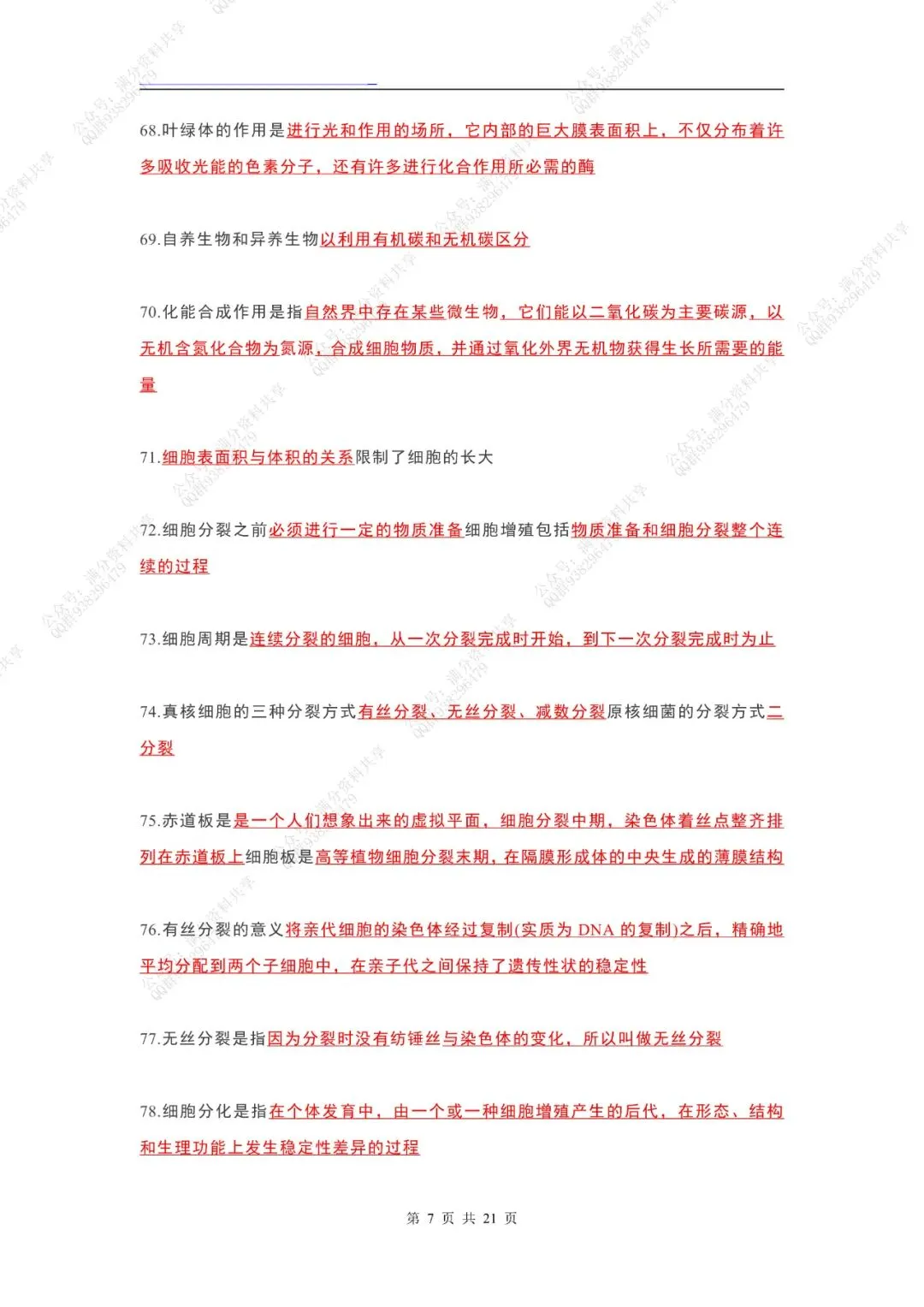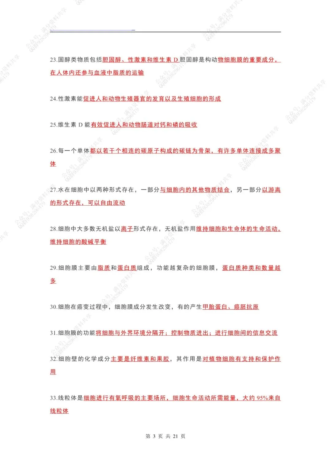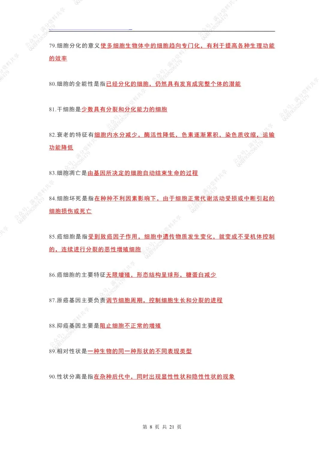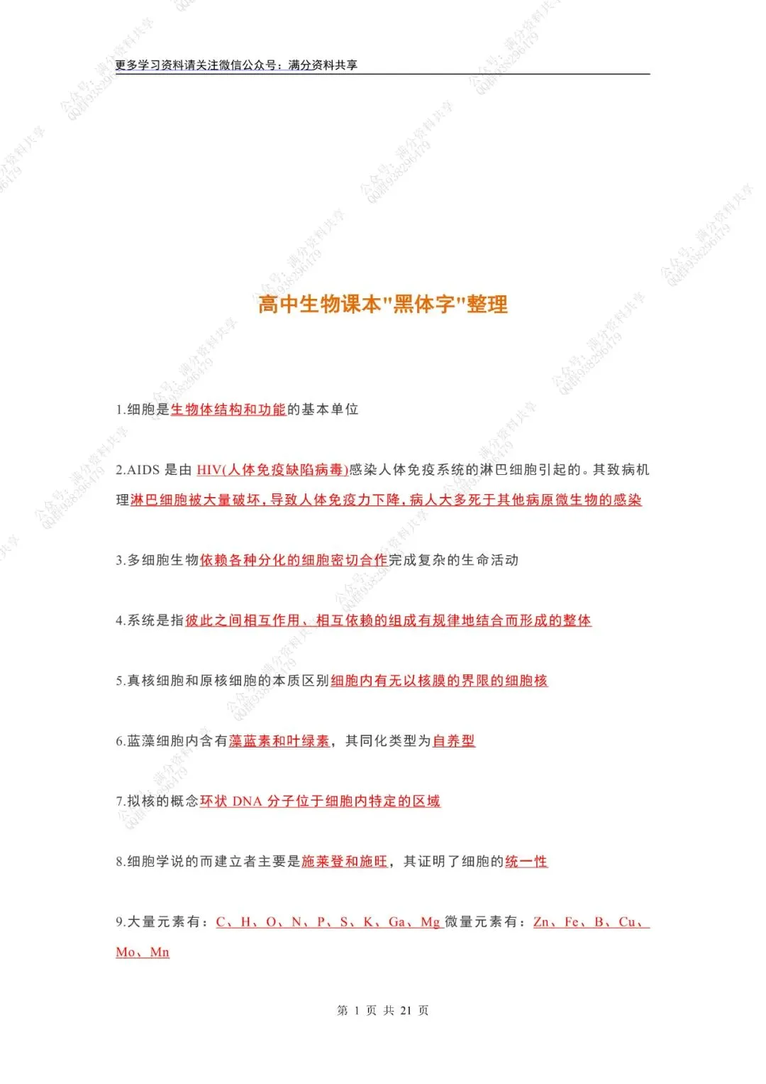 高中生物课本“黑体字”整理(pdf分享)