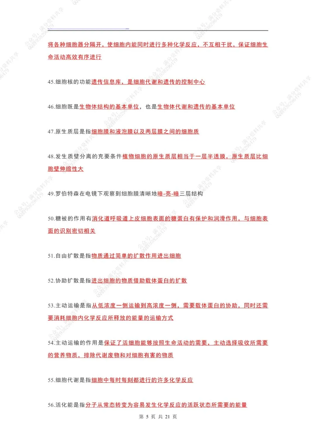 >高中生物课本“黑体字”整理(pdf分享)