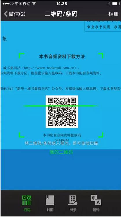 1.使用微信的“扫一扫”功能,扫描课本封底的二维码,关注“新华一城书集微书店”公众号;