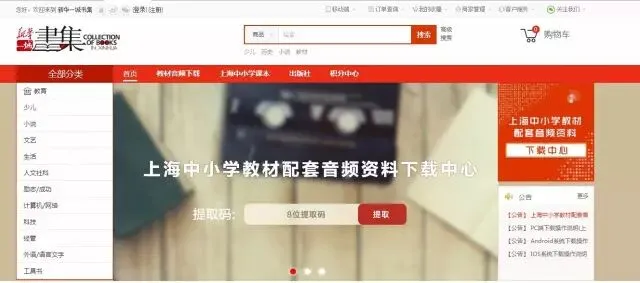 2.点击“上海中小学教材配套音频资料下载中心”,进入下载中心页面;