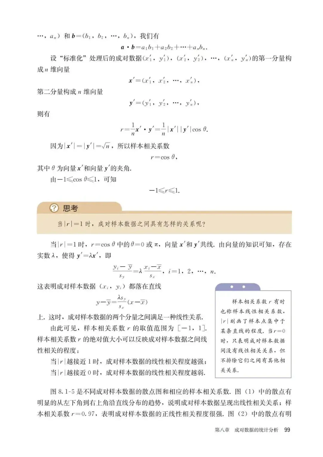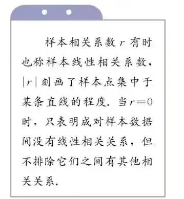 以上是在人教版课本中找到的关于线性回归中相关系数的定义,有一个很容易被大家忽视的点,不过在我印象中,25届的模考卷中我曾做到过以这个点挖坑的题目。也就是课本右侧的紫色小框里的内容——