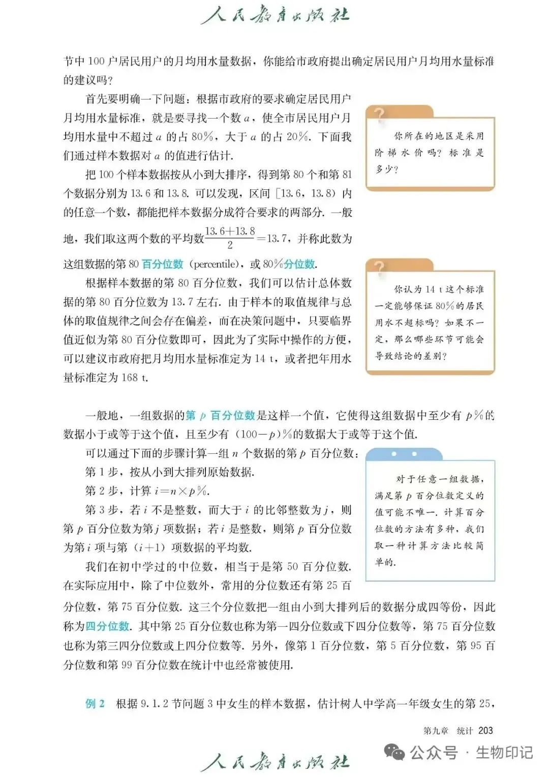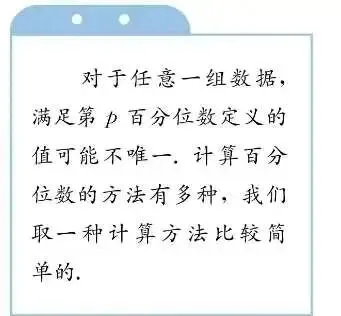 我上学的时候,没有老师跟我说过这个东西是怎么来的,只是记住公式会做题即可,想必相当一部分同学的老师也是如此。然而,课本中给出的百分位数定义其实只是众多定义中的一种,但并非课本不严谨,不知道大家有没有注意到,第一张图的右侧蓝色框中,提到了——