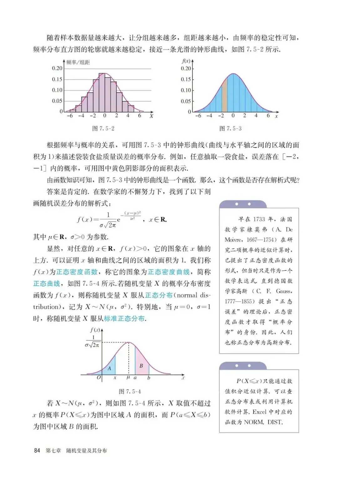这是人教版课本中给出的对于正态分布的具体概念以及计算,我们会发现其实里面提到了密度函数这一概念,但并未深入解释概率密度这一含义,也并未给出所谓的3原则的应用条件与适用场景,个人感觉或许是应该稍作提及的,以下是对此的进一步解释与补充说明: