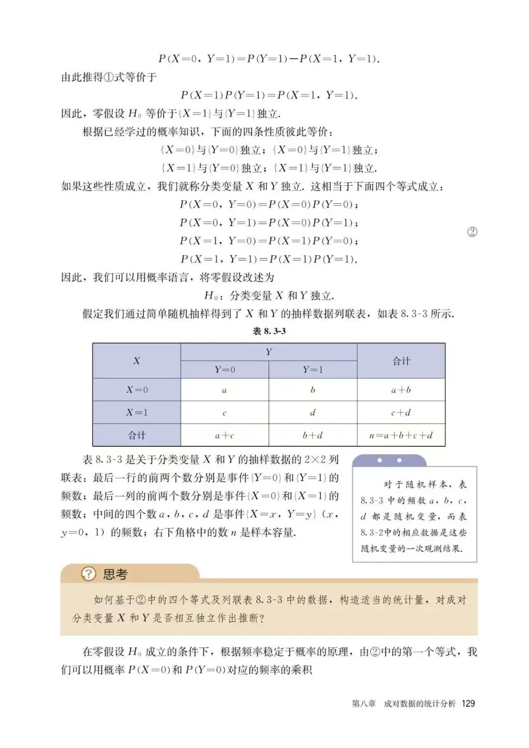 以上是人教版课本中给出的独立性检验的定义及计算判断方法,实际上,个人觉得这里是不够完善的,因为可能会有一部分同学错误地认为,卡方越大关联性越强,这个理论是不严谨的。以下给出在高中课本中不够完善的具体原因说明及补充知识: