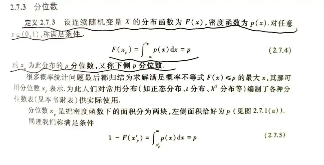 忘记说了,上面我还给了一个阅读材料,是因为在老师的文章里,我看到上课有同学是从类似于阅读材料中的角度去理解分位数的,也是一种较为直观的方式,之前在b站上的小谷老师(对就是内个很厉害的小女孩哈哈)那里看到过这种理解,实际上也是课本中的东西。