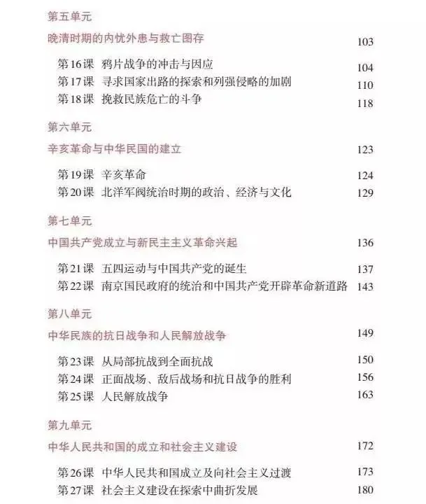 呈现中国人民170多年斗争史和中国共产党90多年奋斗史。必修上册介绍了近代以来中华民族反抗侵略、谋求民族独立的历史,展现了近代中国不同阶层救亡图存的努力和斗争,讲述了中国共产党领导中国人民进行革命、建设和改革的史实,重点介绍了中国共产党领导革命过程中提出的重要战略方针、召开的重要会议、发生的重大事件、取得的重大胜利和涌现的英雄人物等,突出反映了中国共产党在全民族团结抗战中发挥的中流 砥柱作用,揭示了中国共产党的领导和社会主义道路是历史的选择、人民的选择,引导学生认同走中国特色社会主义道路是历史的必然。