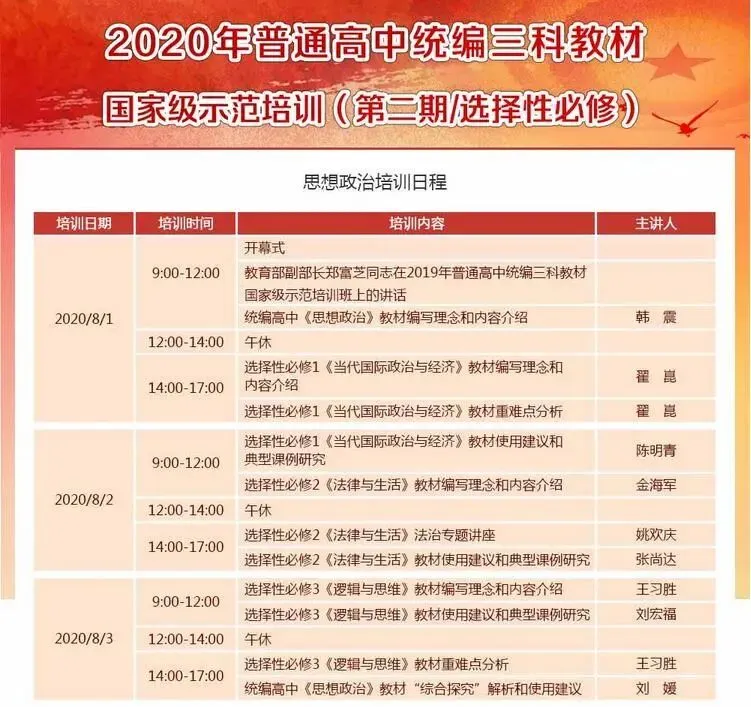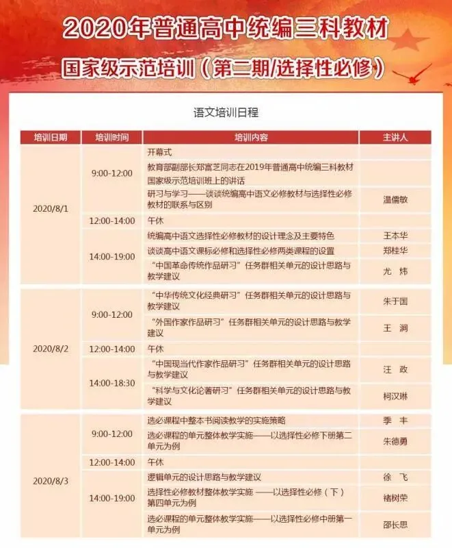 原来,2020年普通高中统编三科教材国家级示范培训启动了!