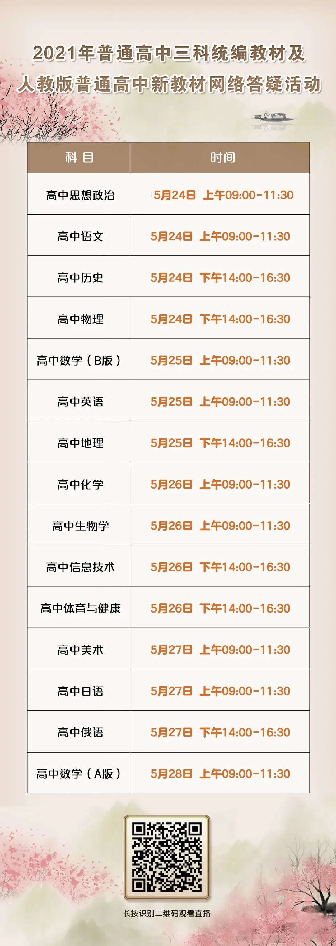 24-28日直播!普通高中三科统编教材及人教版普通高中新教材网络答疑活动来了!