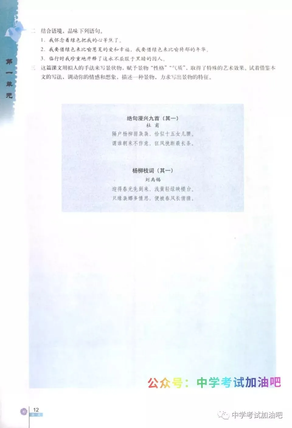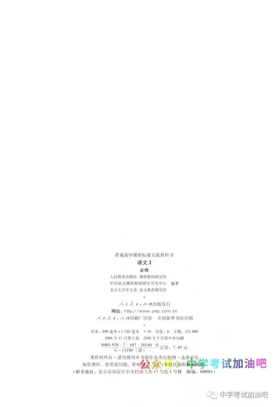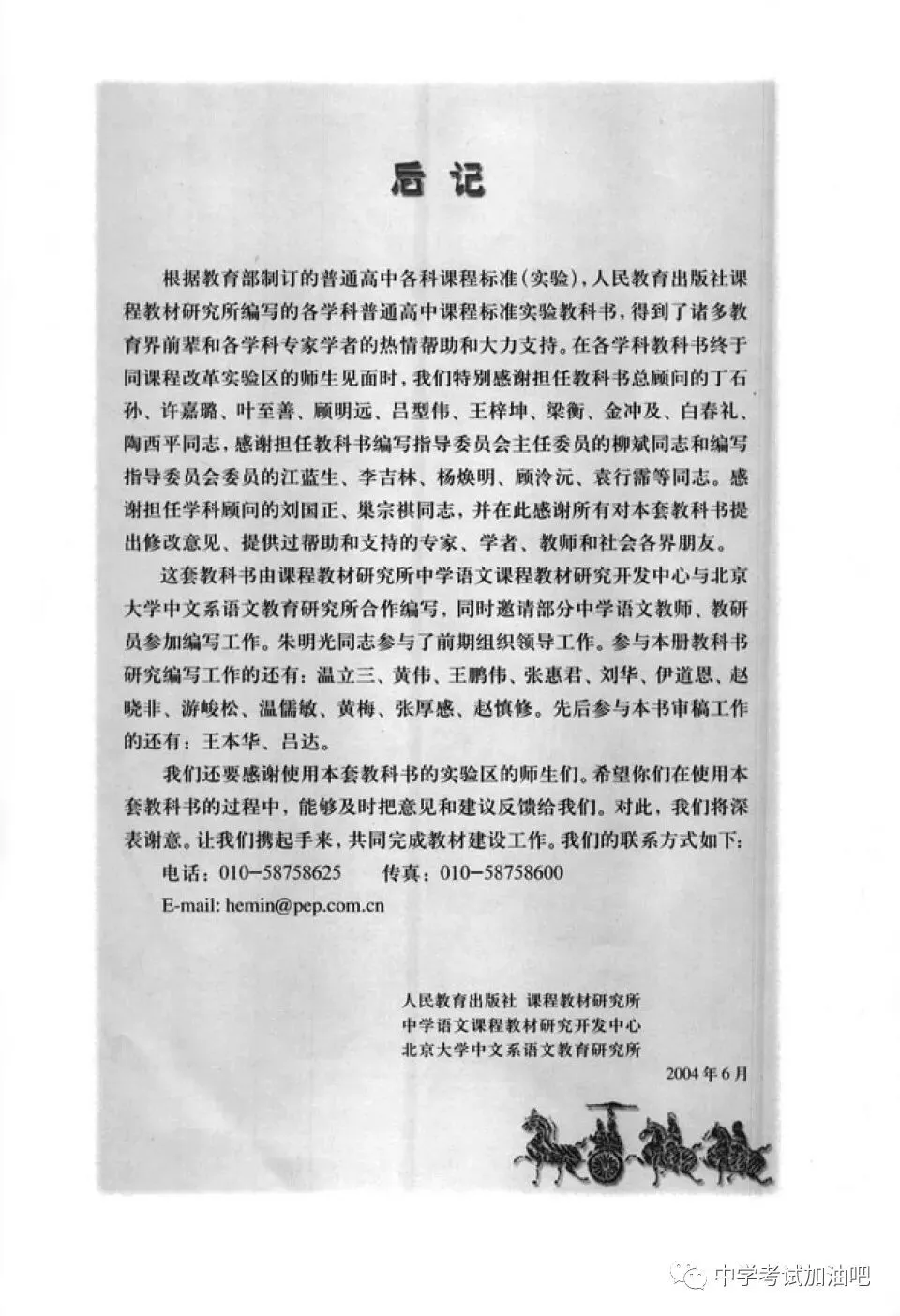 声明:转自中学考试加油吧。版权归人民教育出版社,如有侵权,请联系微信zbcjy1008,我们会立即署名或者马上删除,谢谢!