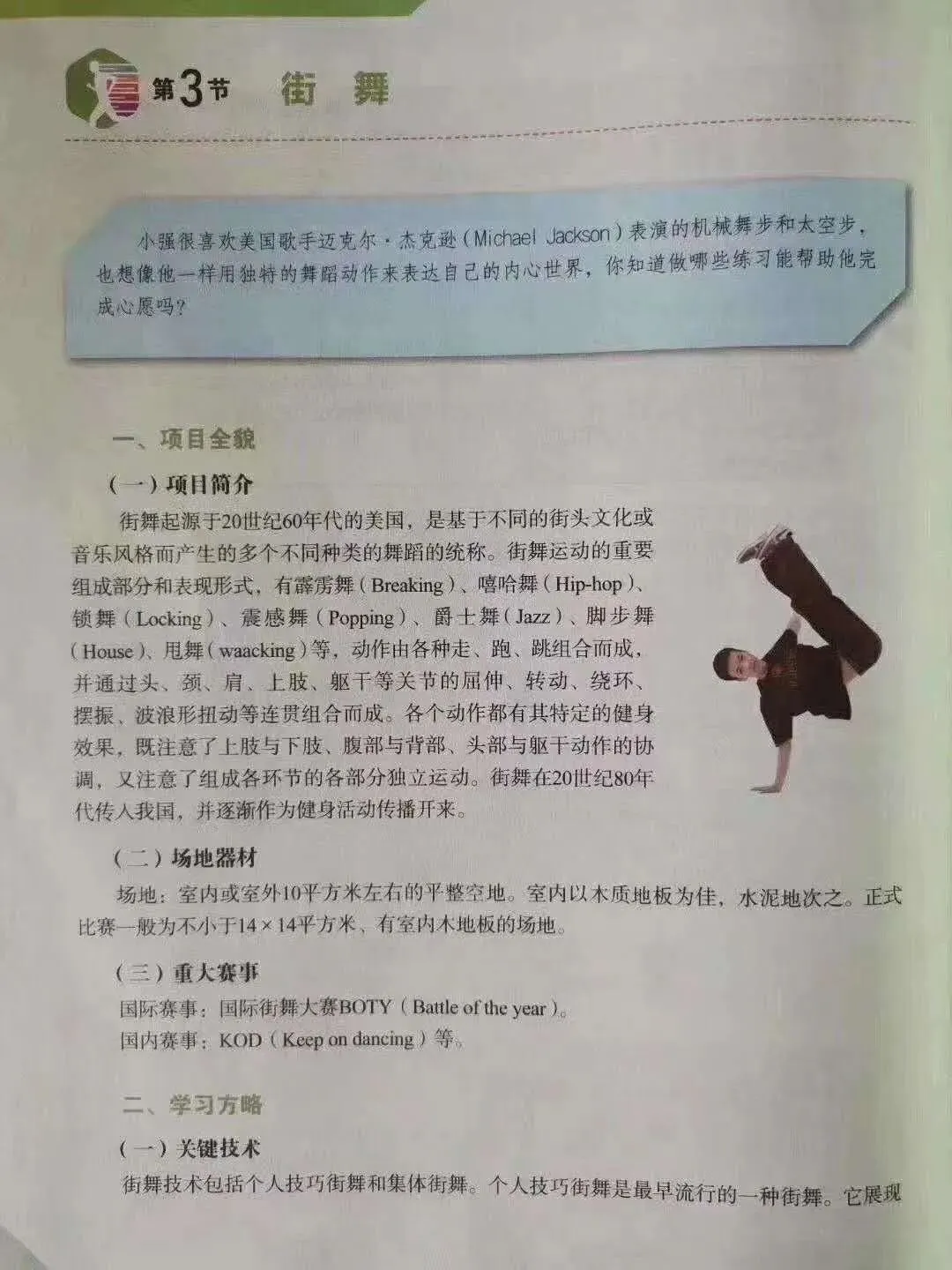 这表明街舞已经进入高中教材。