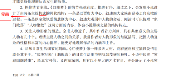 ③另一个突出变化是,高中语文新教材也要求学生阅读整本书,也注重深阅读,注重引导考生提升阅读鉴赏能力,养成良好的阅读习惯。