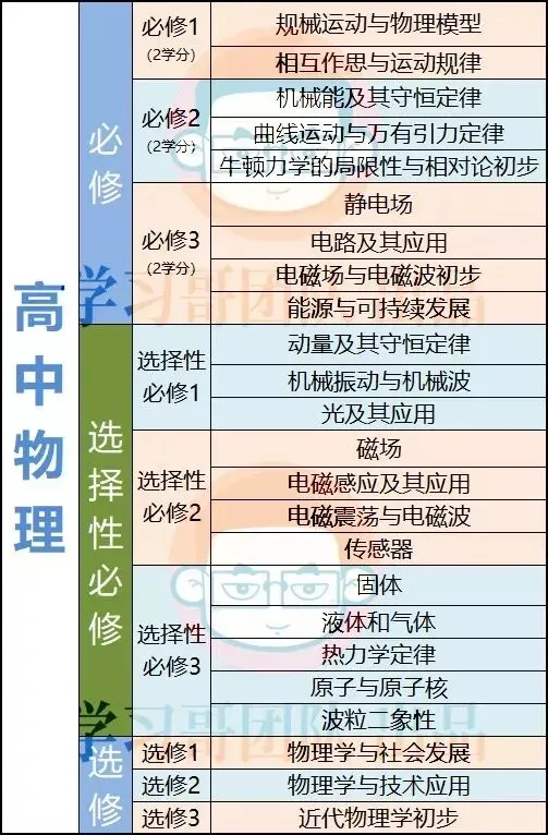 下面是新修订高中物理课程标准整理的高中物理课程结构: