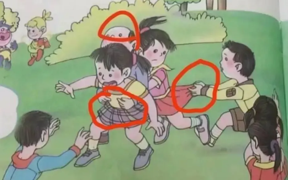 但是,小学生正是善于学习模仿的年纪,这些有毒的插图,必然会对孩子们的行为和认知产生潜移默化的影响。