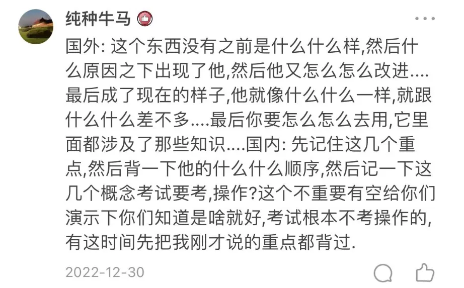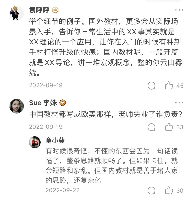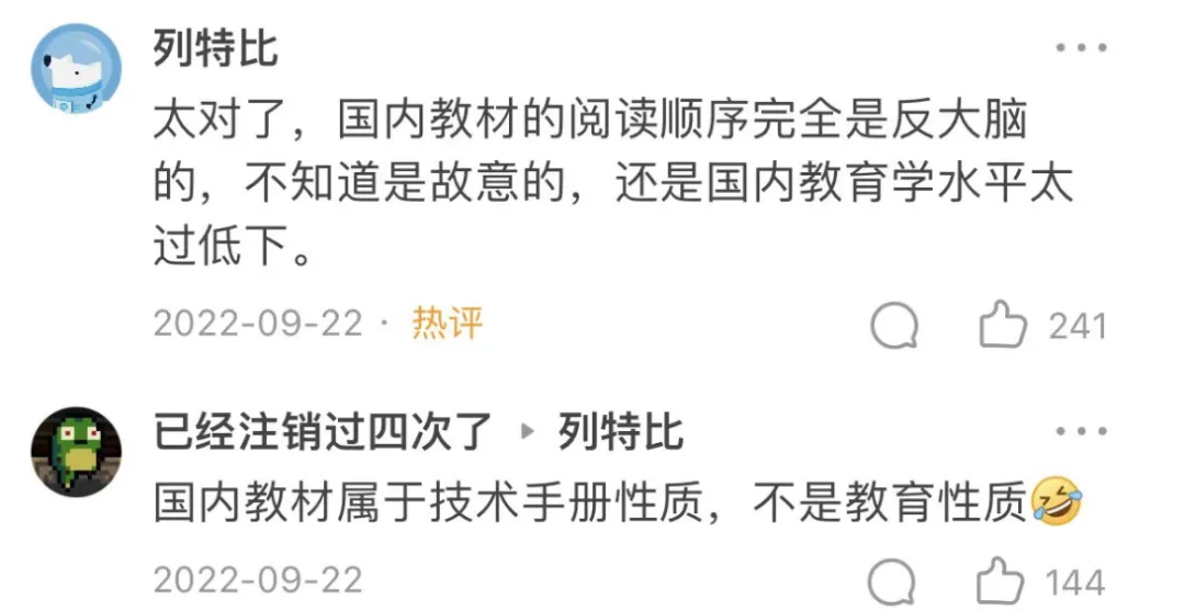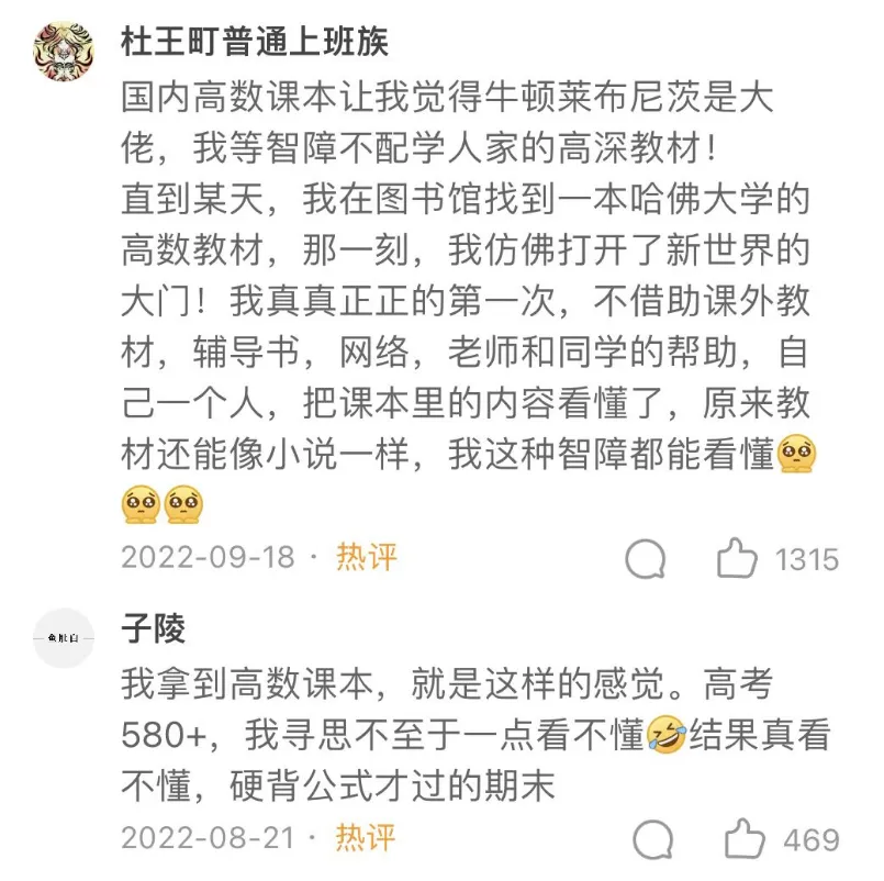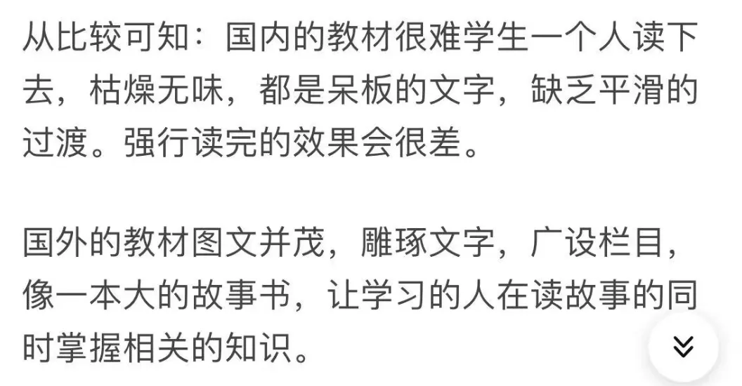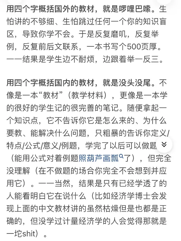 这样的理念,体现在教材上,就是鼓励有兴趣的孩子学透数学,帮助天资一般的孩子去一步步理解数学。结果是,美国小学数学教材就变成了一本本大部头。打开数学课本,整体上就是这样的感受 ...相比之下,中国数学课本体量小得多。大量的功夫都要花在课外的辅导班、教辅上。那么中美教材在编写上到底有啥区别呢?还是拿具体例子来看。比如,每个小朋友都要学的乘法。其实,让孩子理解“乘”的概念,其实完全不是我们大人想象的那么简单。“乘法口诀表”,一言难尽 ...先来说说我们的独有发明——乘法口诀表。(熟记乘法口诀,是咱们二年级数学教材里的一大主题。)这个绝对是一个充满智慧的创造,相信绝大部分小朋友学习乘法,都是从这张口诀表开始的。这张神奇的口诀表,大大提升了我们中国小朋友计算乘法的速度。 很多小朋友在不知道乘法是什么的时候,嘴里已经会背好多的乘法口诀了。乘法口诀还和口语、故事连在了一起,也许又是“数学语文化“的一个体现。比如”不管三七二十一“,比如孙悟空去西天取经要历经”九九八十一难“。但是乘法口诀真的这么好背吗?这个视频,一定要看看 ...某种程度上,它体现了中国孩子在数学启蒙阶段的共同“困境”。可怜可爱又让人心疼,大家肯定在想,为啥这么简单的一句“3×5=15”,小姑娘就是背不下来呢?其实,对这个小朋友来说,这根本不是一个乘法计算题,也不是一个数学问题,而是一个记忆与背诵问题。此时她完全不理解“乘”,因此在她脑海里乘法口诀表里的数字就是一串没有规律的乱码,和下面这张图没有区别。数学靠“背”,有用吗?我相信大家一定有自己的答案。数学不是算数,计算也不可能只靠记忆。背乘法口诀,可以让计算乘法的速度变快。中国小朋友的乘法计算速度一定是最快的,但是这里有一个大问题 -- 对乘法的意义不见得真正理解。下图是一个孩子的错题,显然没搞清楚“乘、除”概念。看来他并没有理解“乘”,而不理解“乘”,就不会理解“除”;就像不理解“加”,就不会理解“减”一样。数学真是一门环环相扣、漏一步错百步的学科。相比之下,美国的小朋友不可能背出“one one equal one”这样的口诀,所以他们只能慢悠悠地去了解乘法。中国二年级上学期就开始表内乘法了,美国三年级才开始。先来看看中国人教版的数学书(二年级上册)是怎么去引入乘法的吧!