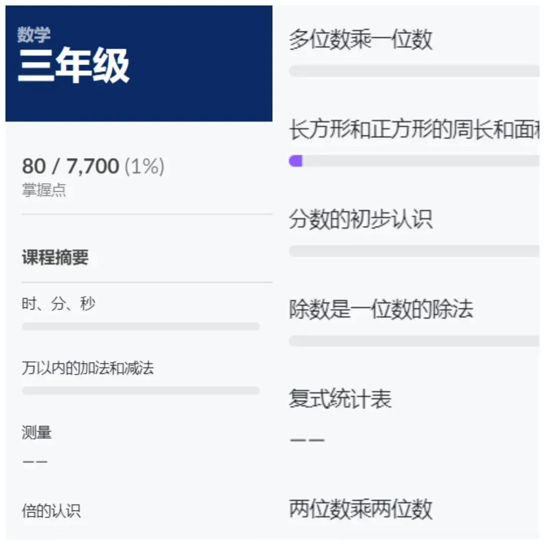 可以说,新加坡数学架起了“中国数学”和“美国数学”之间的桥梁。新加坡数学书里,Targeting Math 算是一个主流。TM教材主编Eric Chan博士是新加坡著名的数学教育专家这个系列,针对1-6年级,有教材也有练习册,新加坡有将近一半小学在用,尤其是比较头部的学校,比如新加坡南洋小学、新加坡政府小学;也是国内多所国际学校和双语学校的指定数学教材。此外,一些在线数学Program,比如数学启蒙阶段备受称赞的 “To Do Math 嘟嘟数学” ...大名鼎鼎的可汗学院(有中文版) ... 网站和app上会提供大量教学视频,基本都短小精悍,1-5分钟讲1个数学知识点;如果孩子哪个点搞不懂,针对性地去看看会很管用。比如,选择小学三年级,孩子们在这一阶段需要学习的数学知识就在这里了:此外,Beast Academy Online(野兽学院),一套在美国广受好评的“超纲”在线小学数学program这是针对美国学有余力的学生开发的在线Program;如果觉得想用更有挑战的素材培养孩子的数学思维,这是一个不错的选择。