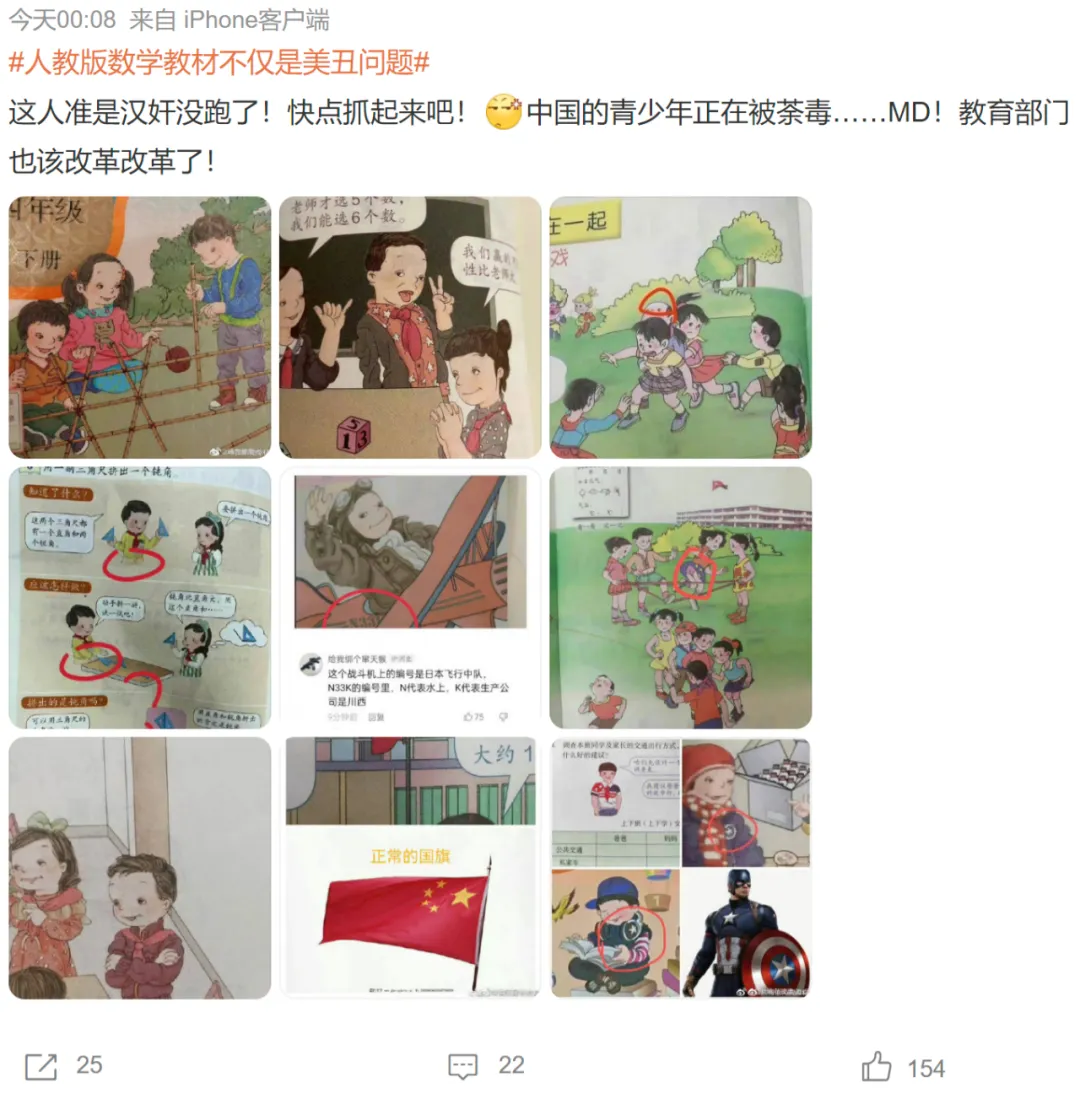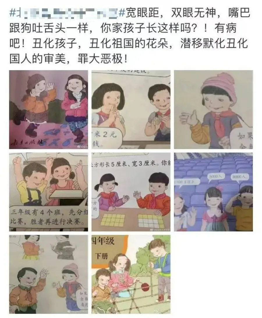 打开微博,一看相关话题的标签,#如何看待人教版数学教材插图争议# #被指插画丑的人教版教材已使用多年#,就知这套教材大概率是翻车了,给众多国人百无聊赖的隔离生活带来了一个情绪出口。