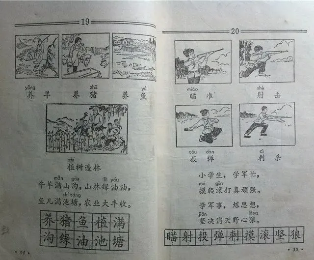 这样的指导思想之下,当时的语文课本尽管面对的是小孩子,但字里行间依然奔涌着革命热血。