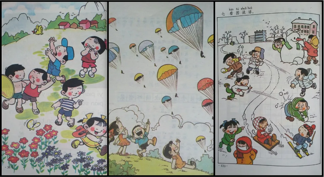 但整套教材下来都是这一个风格,未免有些单调。而且儿童的形象,也在按照成年革命斗士的标准去塑造,忽视了儿童本身渴望关爱、渴望童趣的内心需求。