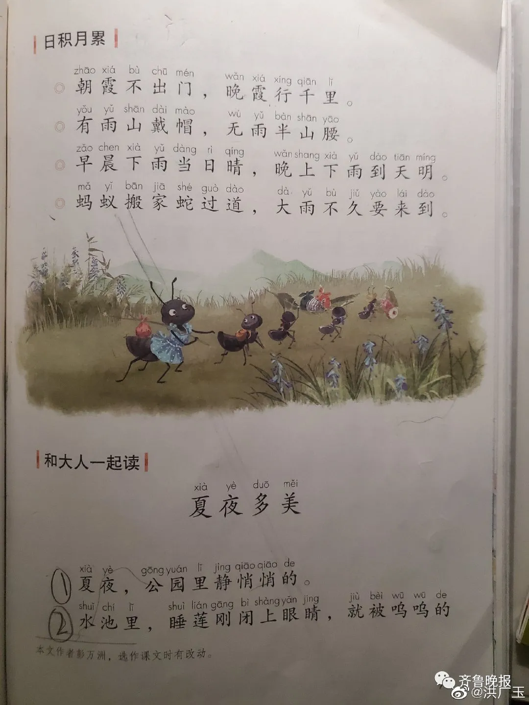 “今天看孩子语文课本,发现有一处错误的知识——蚂蚁搬家跟下雨没关系,可能是种群扩大等原因,蚂蚁并没有测算雨下多大或淹到哪里的能力,如果蚂蚁有这个智商,那应该直接就把窝选在雨水淹不到的地方。”