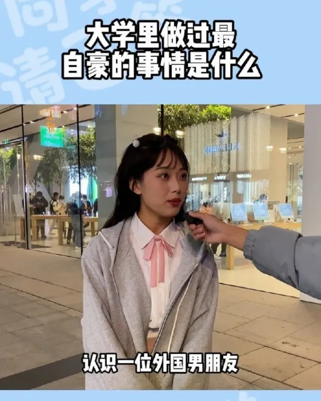 这将留下什么样的恶果呢?恶果就是,现实中我们能经常听到下面这个女生说的话:大学里最自豪的事情,就是认识了一个外国男朋友!