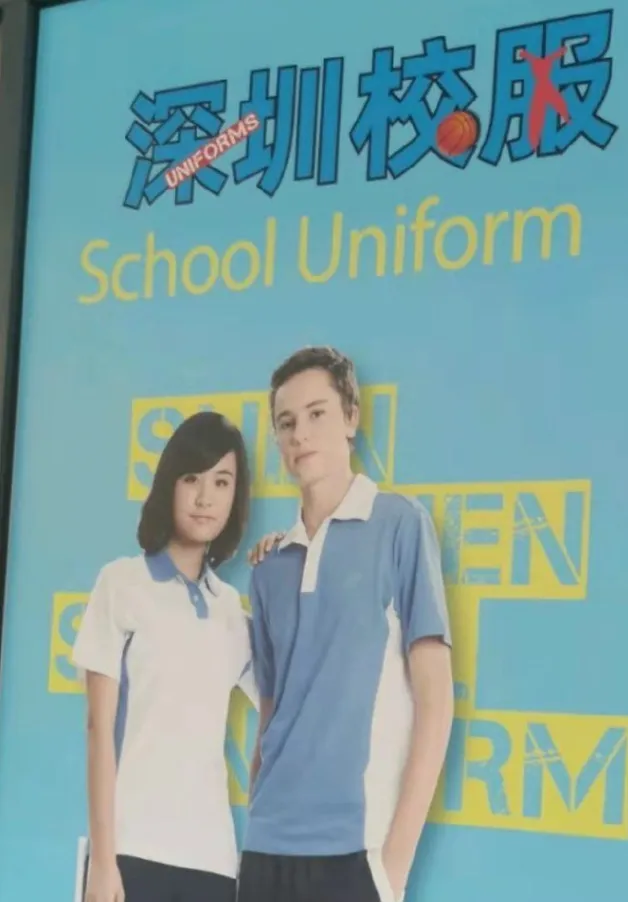 连卖个校服,也是华人女生,匹配白种男生。