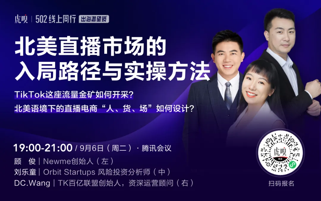 虎嗅「502线上同行」出海潜望镜特邀Newme品牌创始人、TK百亿联盟创始人、Orbit Startups 风险投资分析师,为大家详解直播闭环中的实操方法与经验。