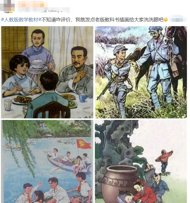 部分网友表示插画人物眼神奇怪、毫无美感,对比其他版本的教材插图存在明显审美差距。