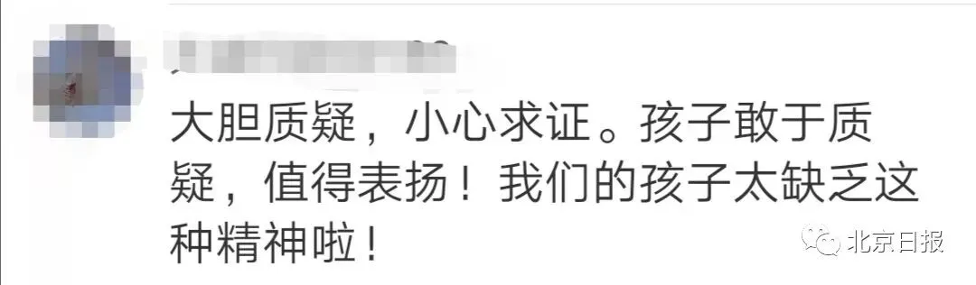 还有很多网友虽然没有对问题进行作答,却为男孩的质疑精神点赞。