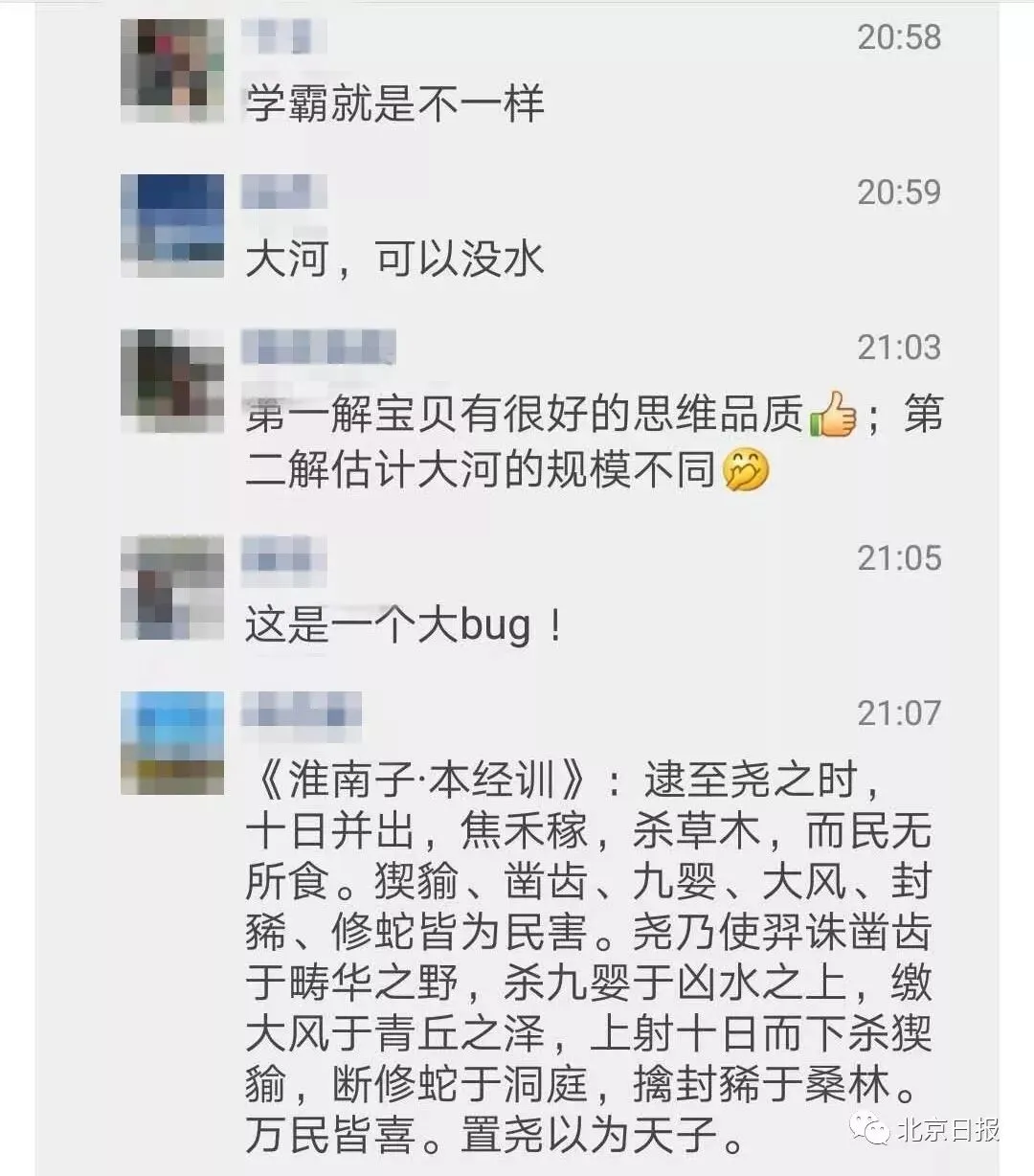 面对儿子提出的这个问题,难以作答的妈妈何女士只得将其晒到了朋友圈,求高手解答。没想到朋友圈一下子炸开了锅。