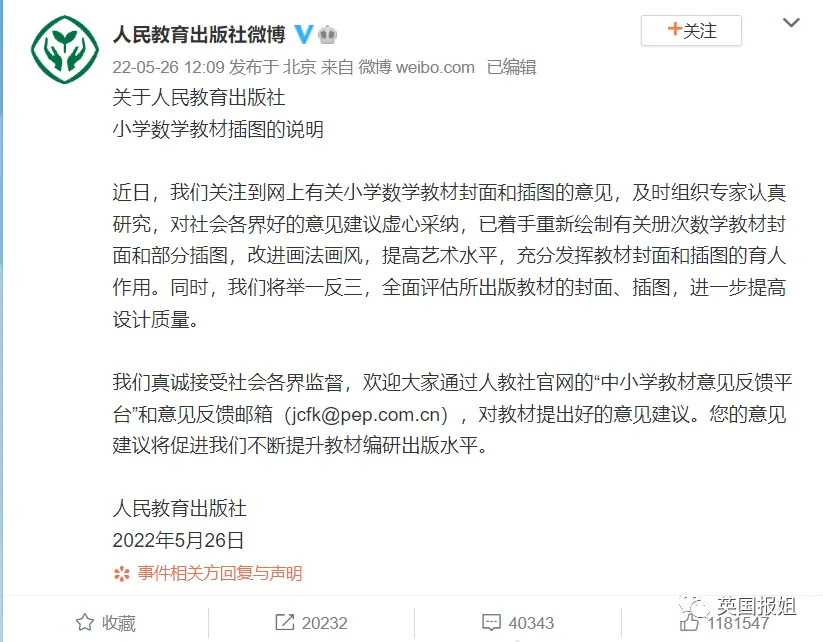 这次事件的反应很快,早上教材上了热搜,中午,人民教育出版社就发了整改说明。