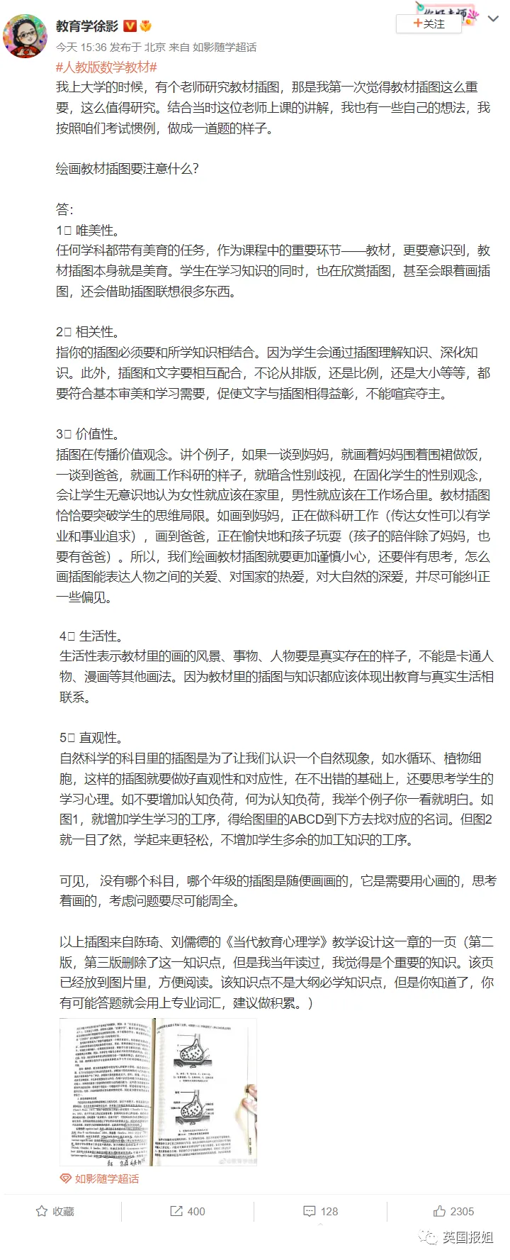 我们不能保证每一个画手都有绘制教材的水平,但是教材的审核流程应该有一套完整、严格的标准,才能保证最终送到全国孩子们手上的教材,是合格的。