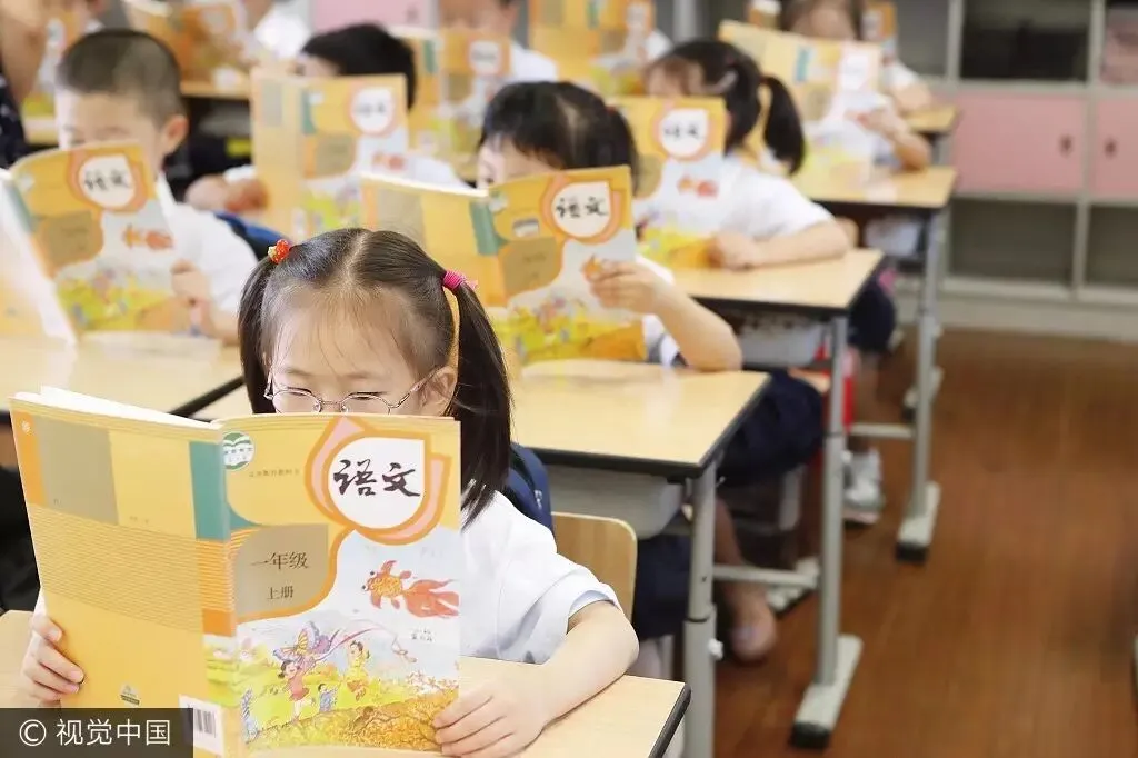 ▲一年级语文教材。图片来自视觉中国