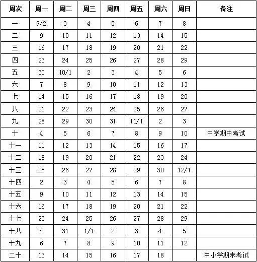 2019~2020第一学期校历