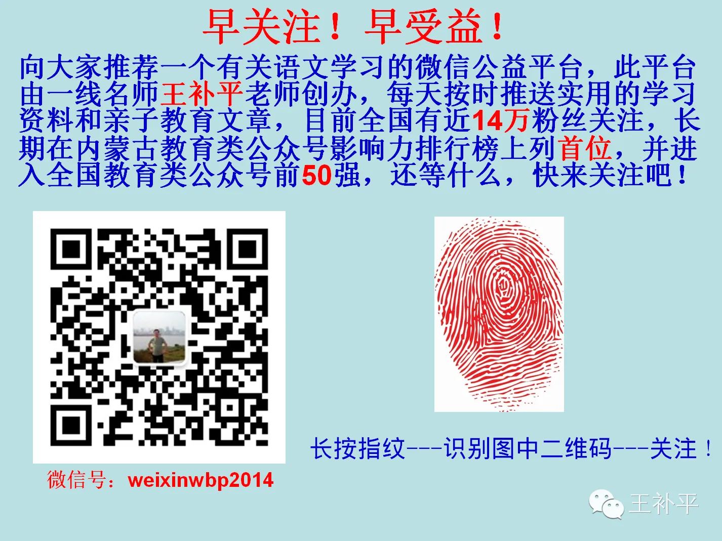 想要获取更多语文学习资料,请长按下面图片,关注王补平老师微信公众号