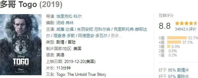 比如之前给大家介绍的《多哥》,雪橇犬和主人接力运送血清,拯救数百位儿童生命的真实故事,就感动了不少观众。