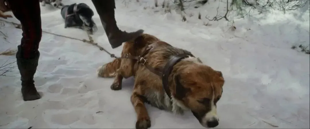 但他眼里只有黄金,对雪橇犬只会暴力驱赶,动辄就棍棒加身。
