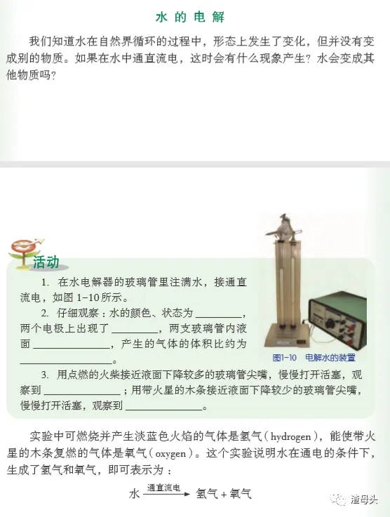 说好的讲水的组成的呢?一上来就电解?一上来就有没有变成其它物质?一上来就给水通电?...