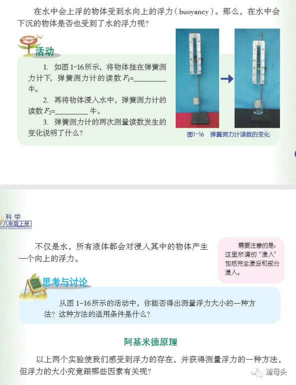 看了半天,你能说出浮力的定义吗?按图中文本的意思,“所有液体都会对浸入其中的物体产生一个向上的浮力”就是浮力的定义,那空间呢?浸多少算浸入呢?受力平衡后位于接触面的算不算浸入?为什么放进液体中就会有一个向上的力?.......我觉得这句话应该跑去叙拉古讲给阿基米德听听,看看他会不会被气到活过来......