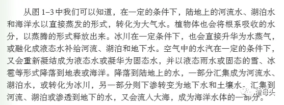 再看具体内容,水的循环里提到了水的运动和转化,在没有任何预警的情况下,直接用一段文字描述了三态变化: