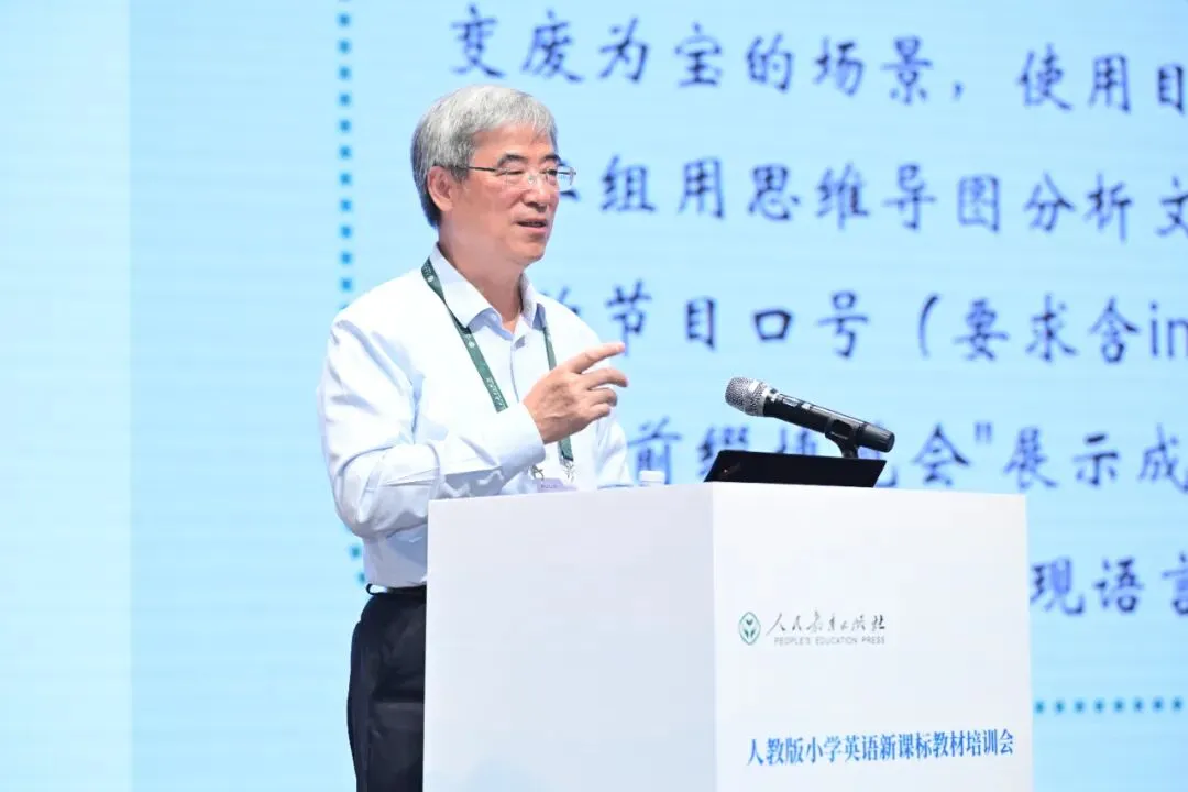 最后,精通教材主编苗兴伟教授作总结发言。他表示,四节说课从教学设计到课堂教学的实施都贯彻了新课标的重要理念和核心素养。老师们做了有效的内容整合,灵活运用了教材内容,这些独到的教学范式对全国小学英语教学具有示范引领作用。