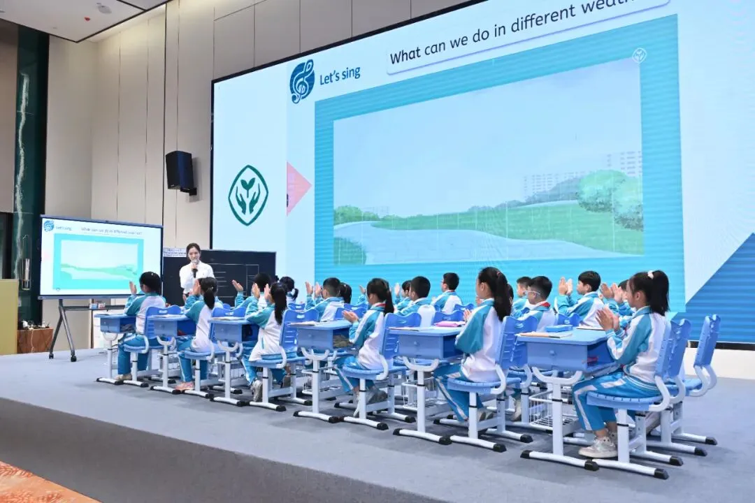 22日下午PEP教材分会场聚焦四年级教材,浙江省台州市余佳艳老师与海南中学澄迈附属小学的学生共同呈现了“Unit 5 The weather and usRead and write”读写现场课。浙江省教育厅教研室的郑文老师和安徽省教育科学研究院的赵杰担任点评专家。两位老师充分肯定了该课堂在读写教学设计中体现的情境真实性、任务层次性以及语言内化活动等多方面内容,并认为该课尤其突出了学生语言能力与思维品质的融合发展。