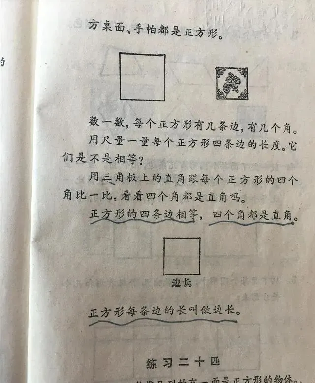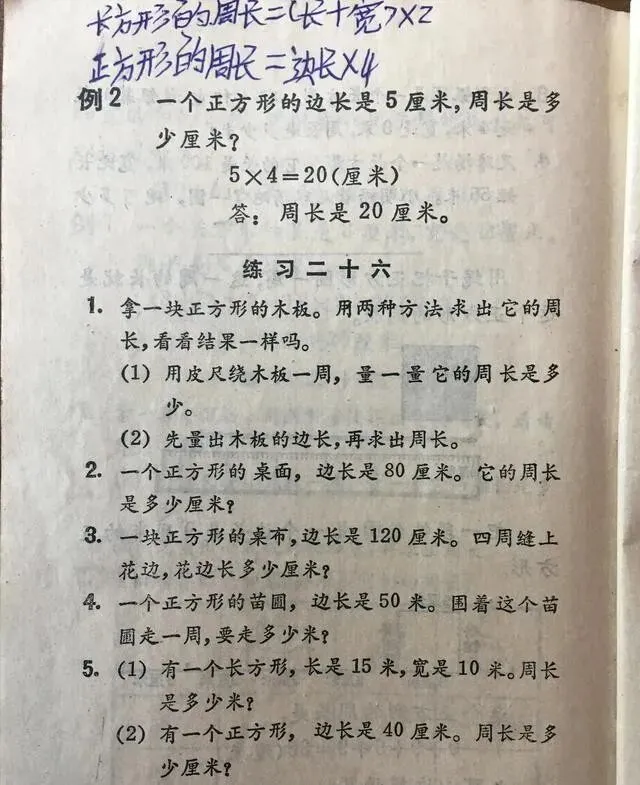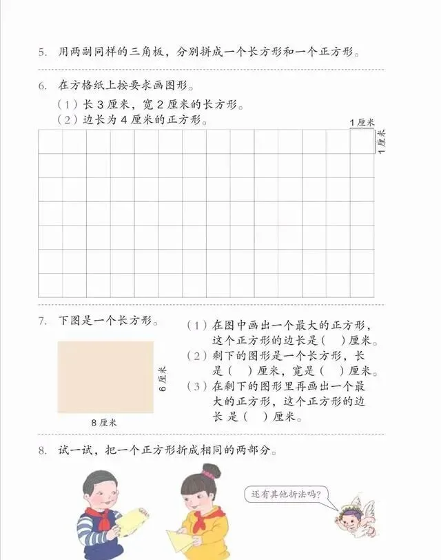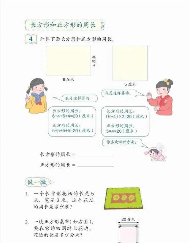 练习题里还把长方形和正方形放一起对比 , 异同点一目了然。
