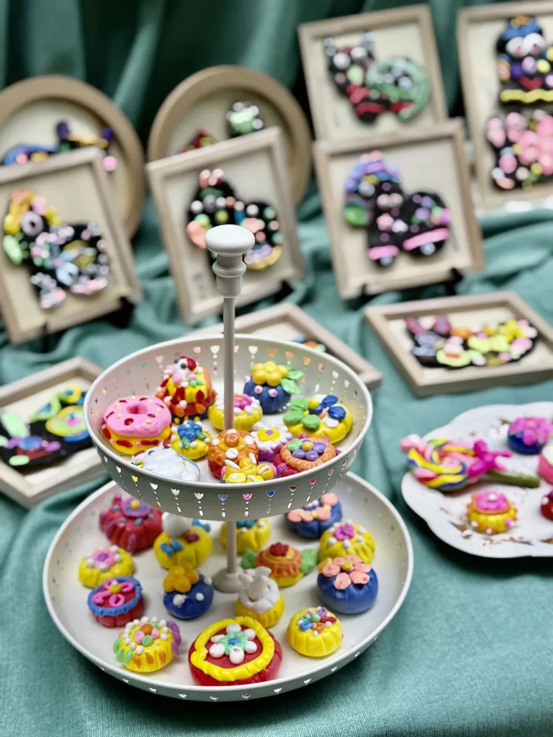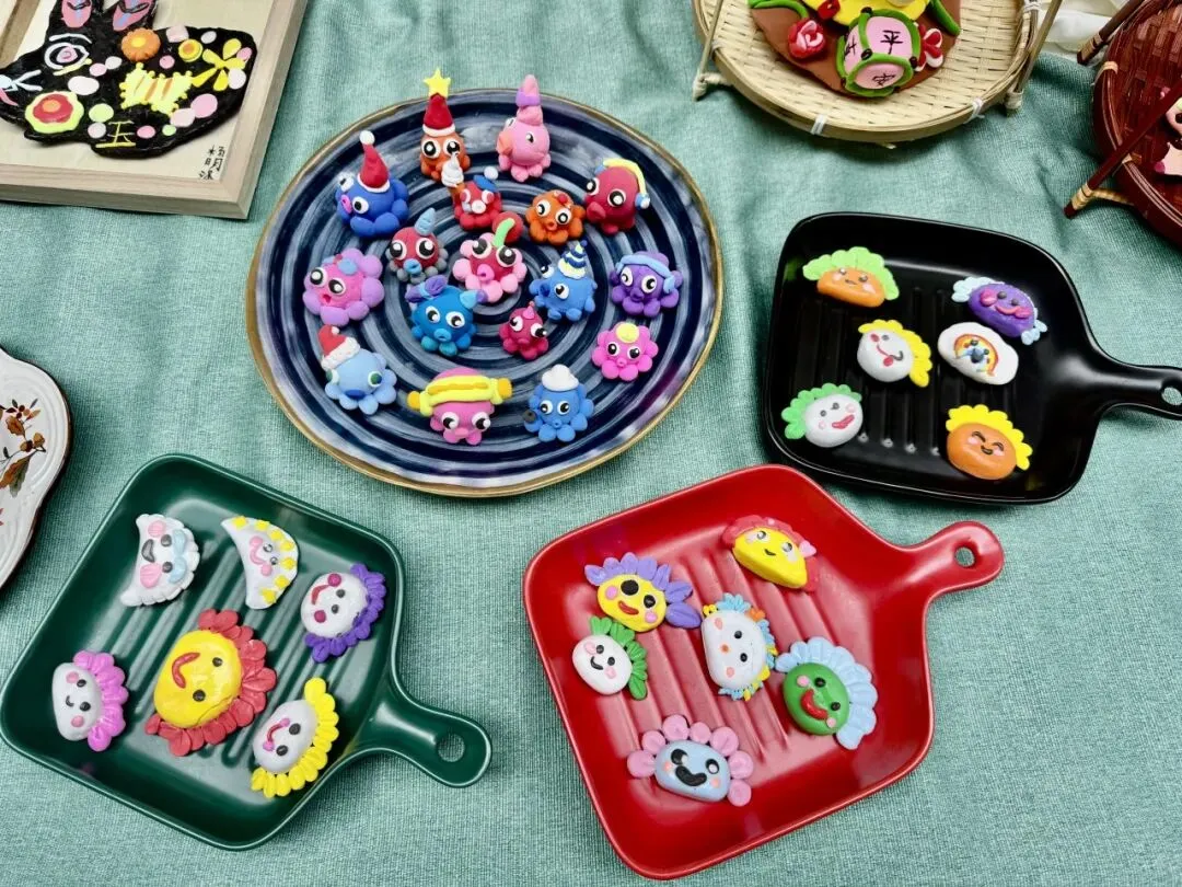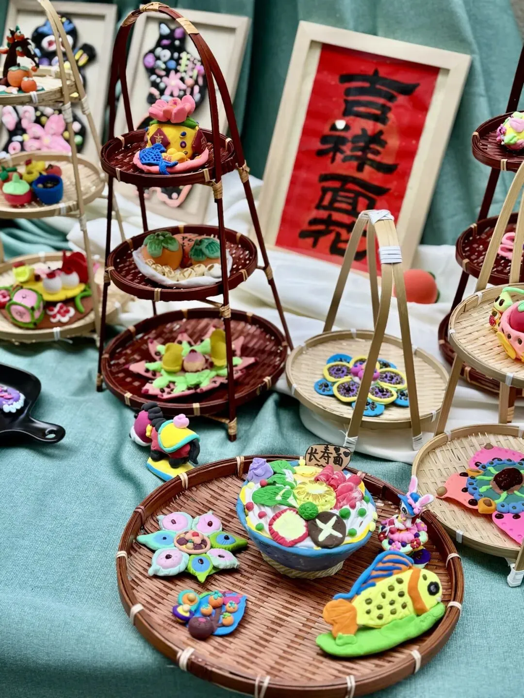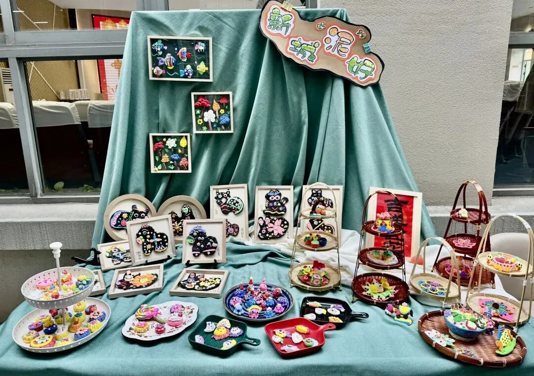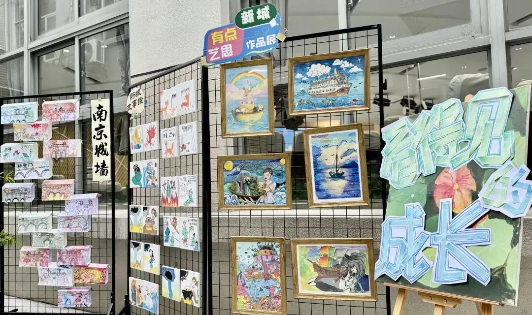 活动现场的展览区内容丰富多样、精彩纷呈。新城“泥”好粘土展里,《遇见泥泥狗》《马年祝福》《甜甜的月饼》《秋天的树》等作品童趣满满,尽显孩子们的动手能力与奇思妙想;南京城墙主题展区中,水拓画作品灵动雅致,晕染出城墙的别样韵味;新城故事会与新城艺术作品展更是集中展示了学生们的艺术积累与创作才华,让在场师生沉浸式感受艺术创作的魅力。