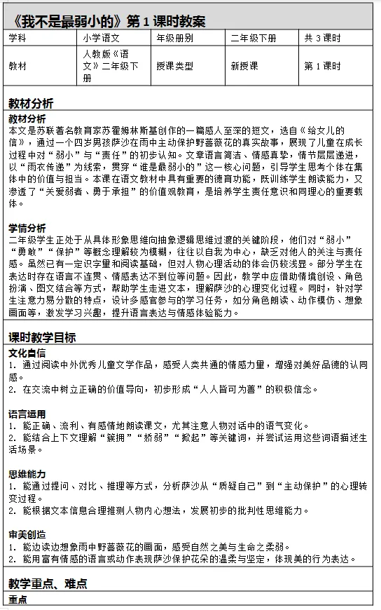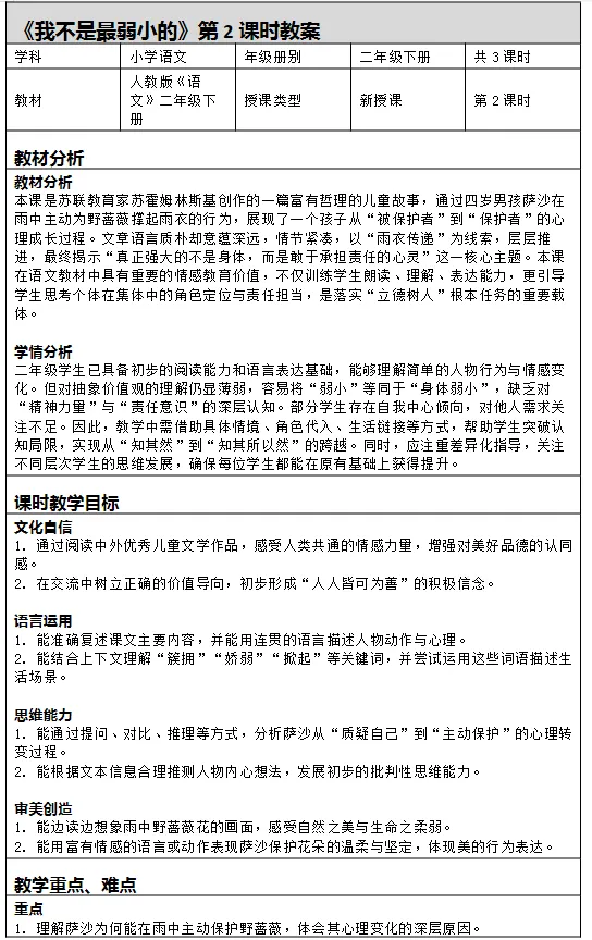 2026春新教材小学语文新二年级下册二下语文第二单元第7课第七课《我不是最弱小的》课时教案共三课时 教学设计 电子版!如果觉得不错的话,可以转发分享到班级群/年级群,让家长打印出来,帮助孩子学习! / 特别声明 /