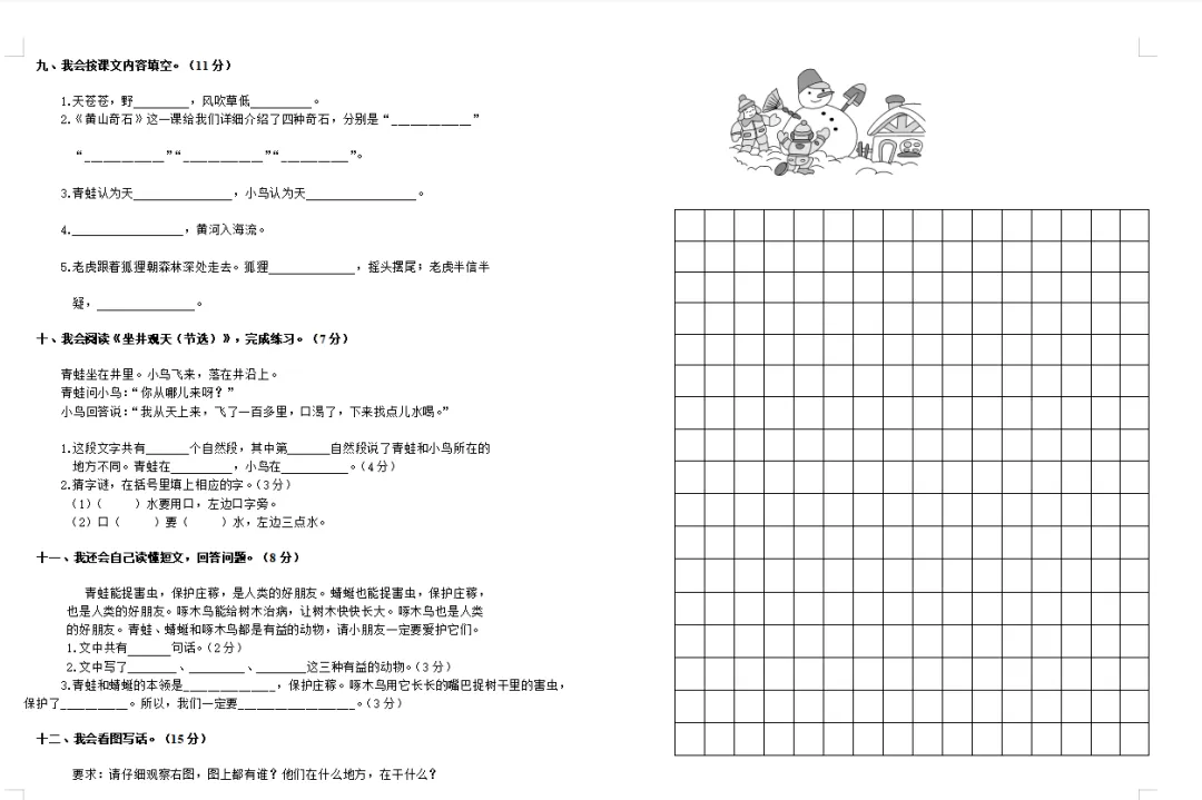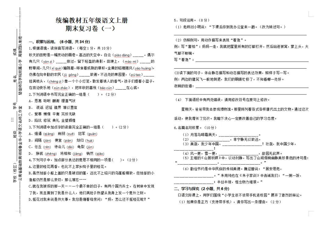统编教材小学语文1-6年级上册期末复习卷(一)云南省“兴滇英才支持计划”教学名师鲁金华语文工作室简报 第126期