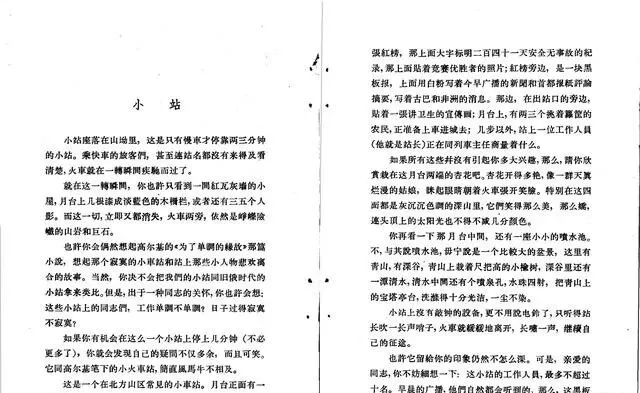 开头几句我到现在还能背 , "这是铁路线上的一个小站 , 只有慢车才停靠两三分钟 , 快车疾驰而过……"