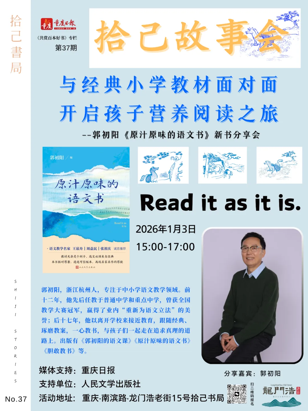 活动地址:重庆·南滨路·龙门浩老街15号拾己书局2楼