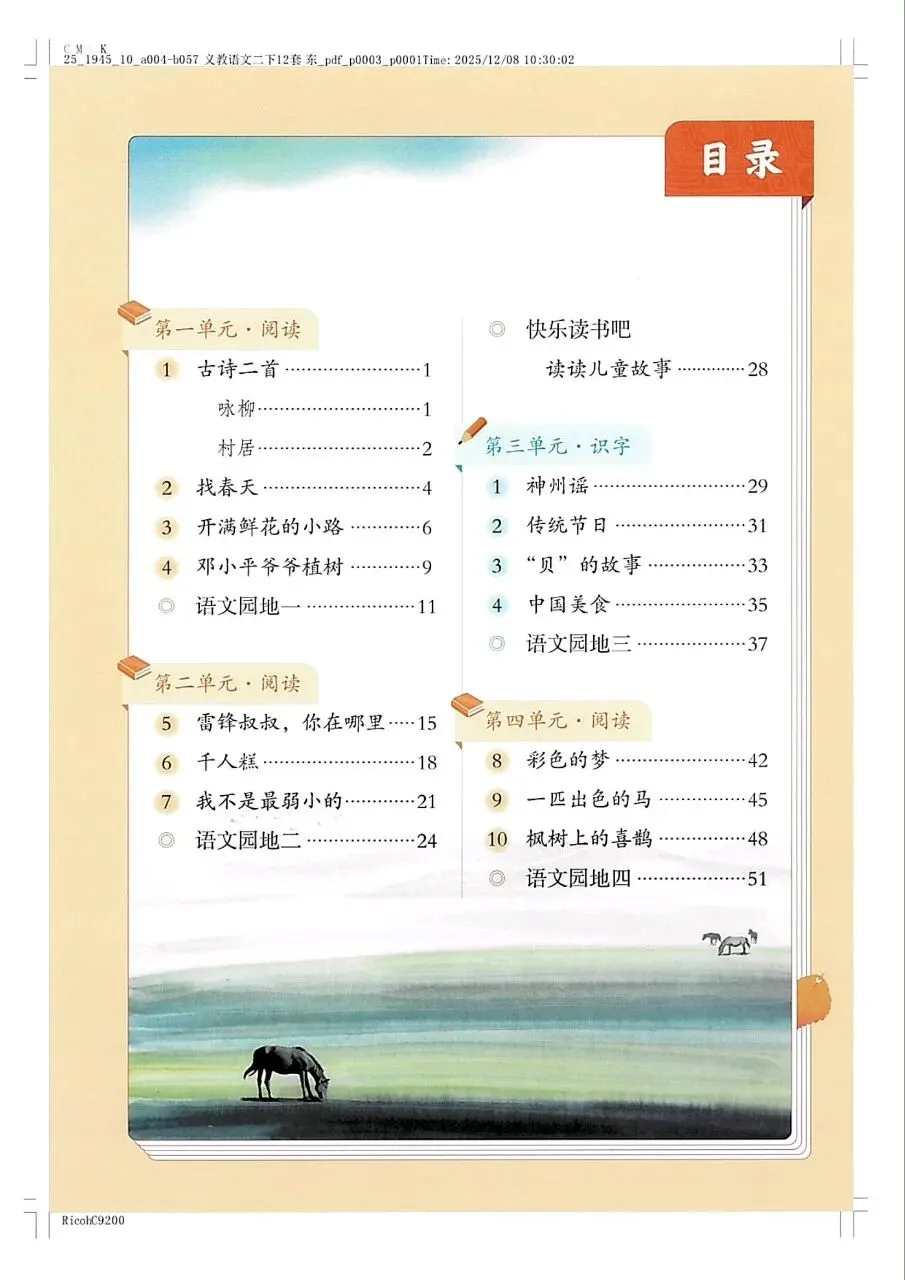 26年春新教材小学人教部编版语文二年级下册电子课本pdf 可下载打印!