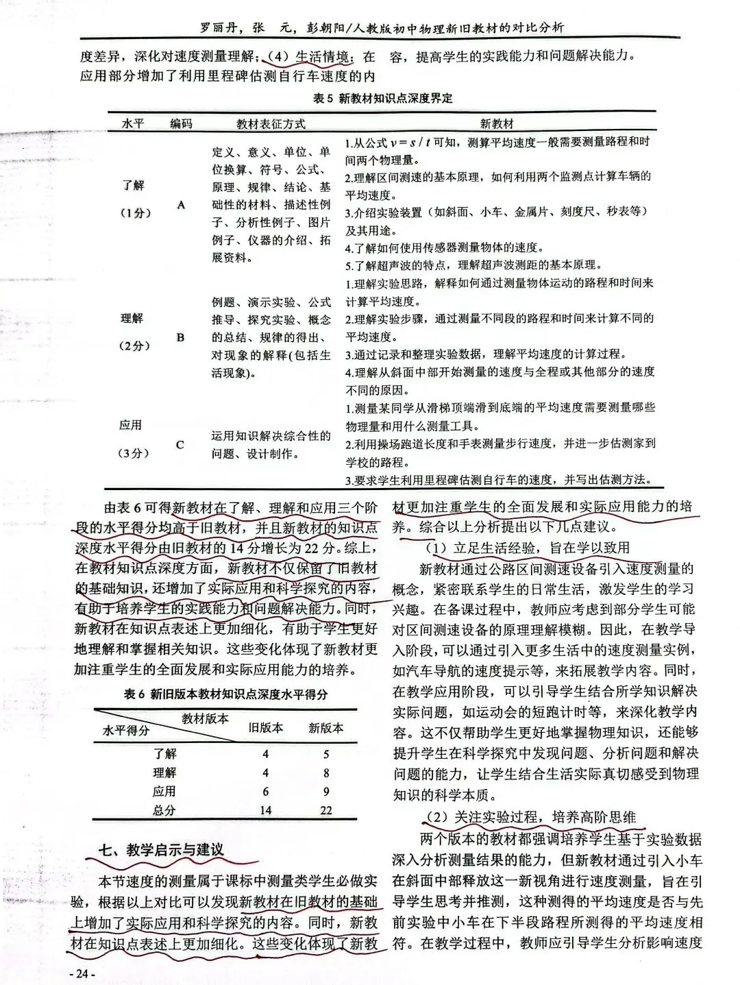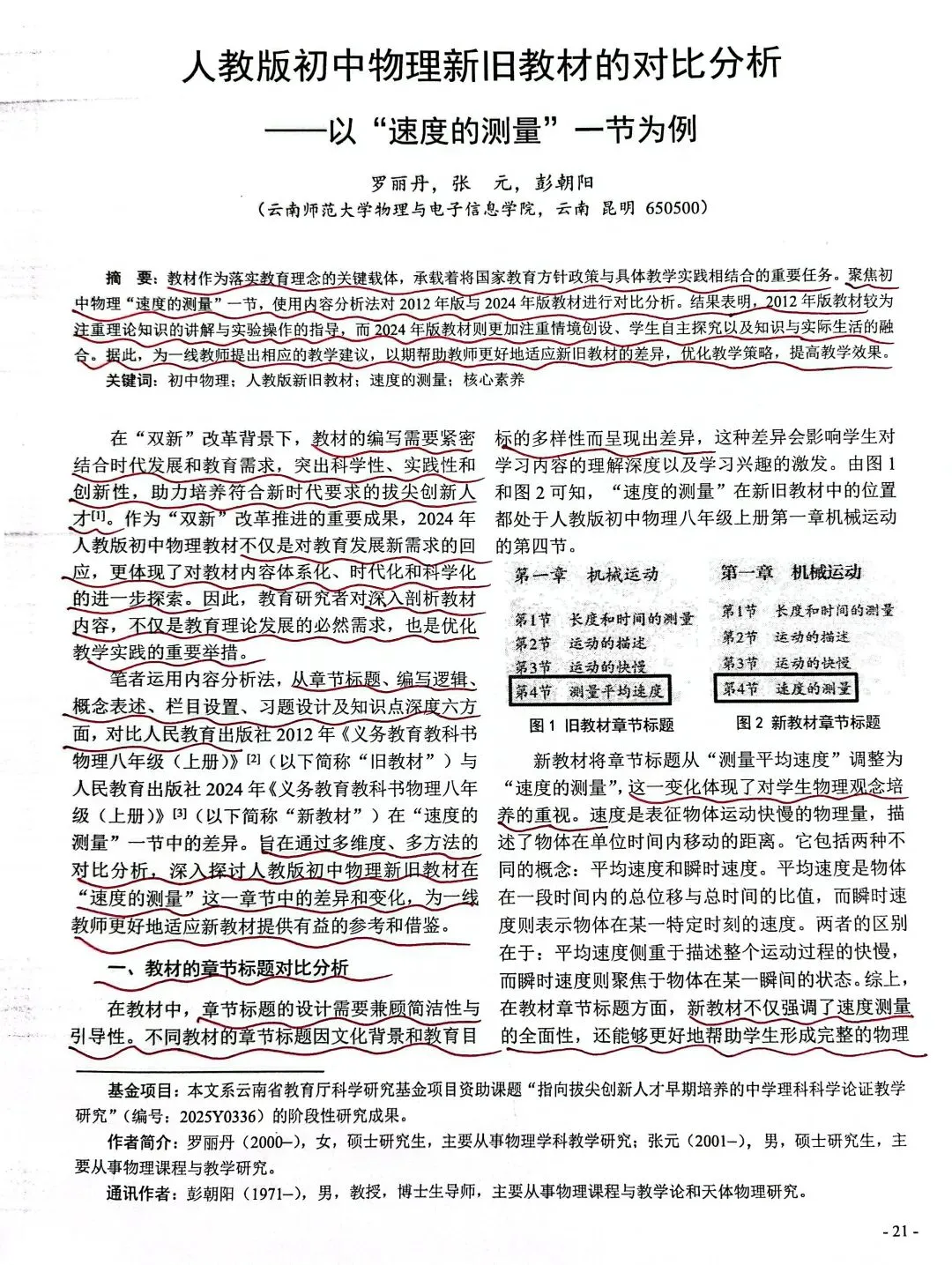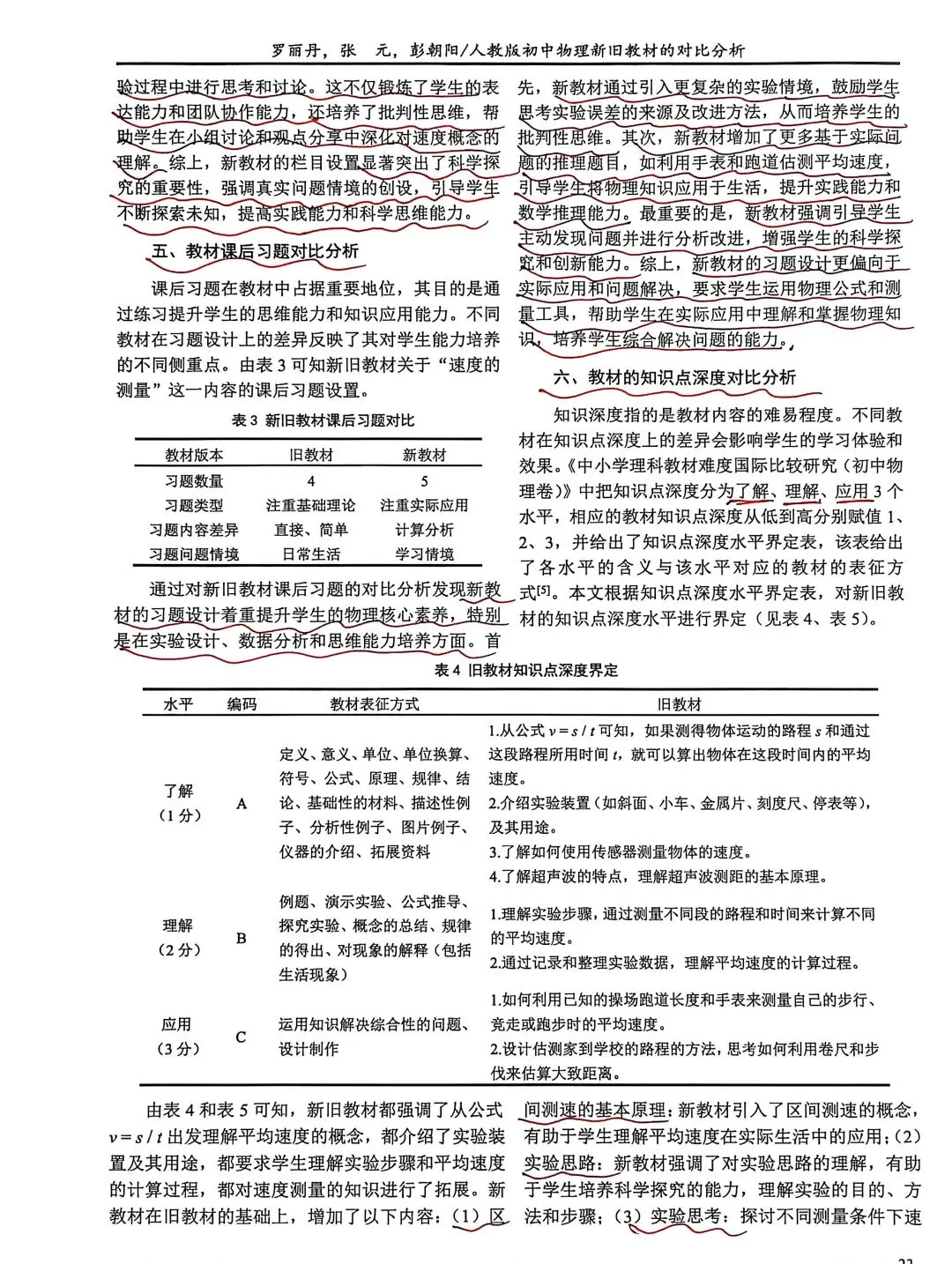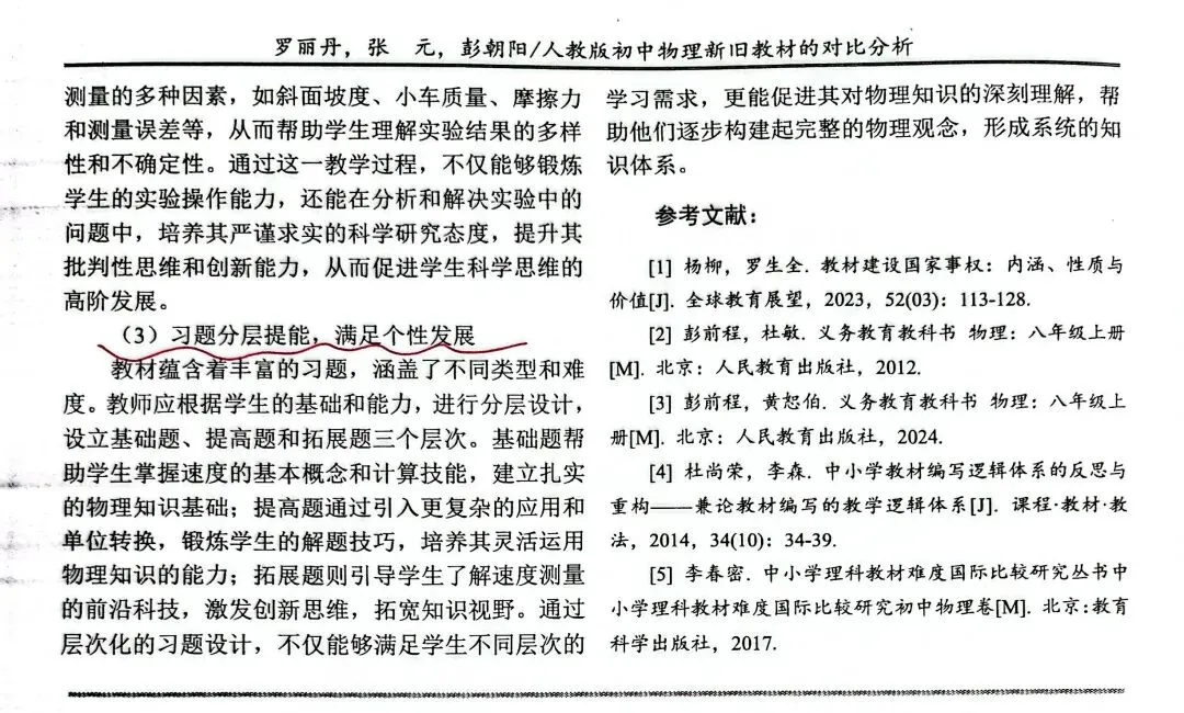 标题:人教版初中物理新旧教材的对比分析--以“速度的测量”一节为例