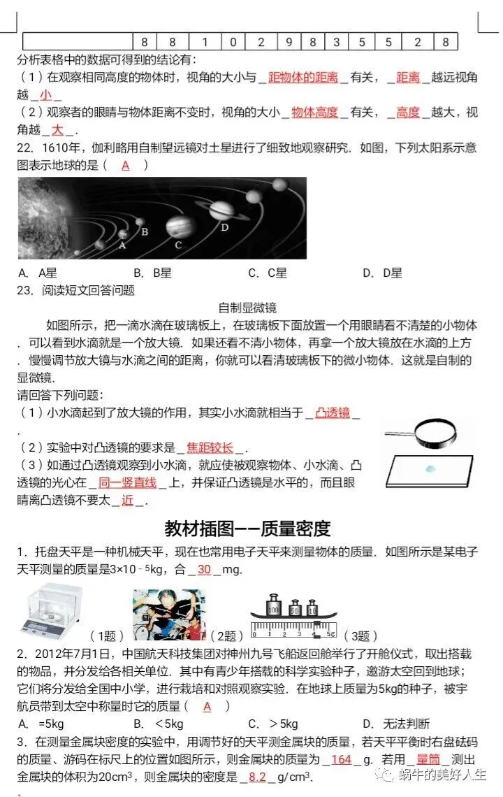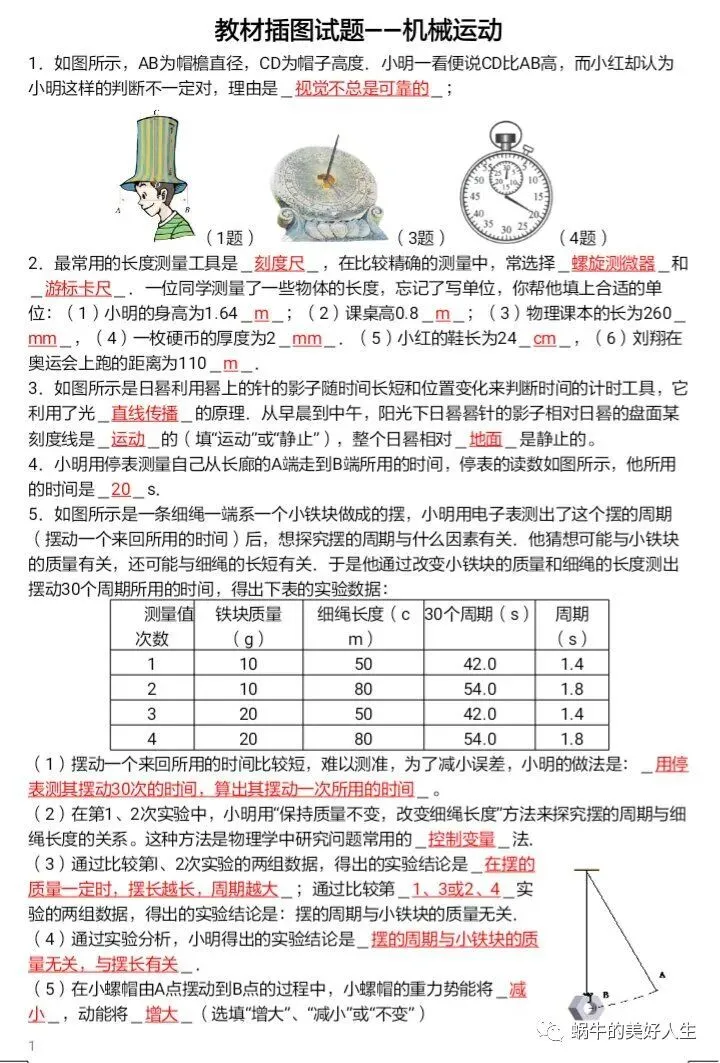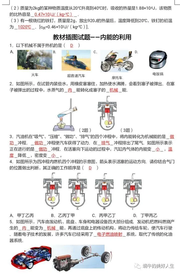 初中物理 | 九年级教材插图题